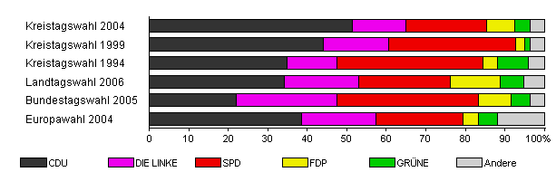 | Kreistagswahl 2004 | 62,6 | 51,5 | 13,4 | 20,4 | 7,3 | 3,9 | 3,6 | |