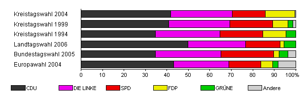 | Kreistagswahl 2004 | 48,3 | 41,7 | 28,8 | 15,4 | 13,8 | x | 0,4 | |