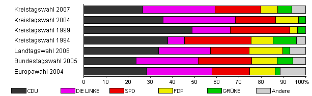 | Kreistagswahl 2004 | 52,5 | 35,8 | 32,6 | 18,1 | 10,4 | 3,1 | x | |