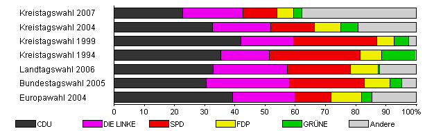 | Kreistagswahl 2004 | 55,4 | 32,6 | 19,2 | 14,6 | 8,7 | 5,7 | 19,2 | |