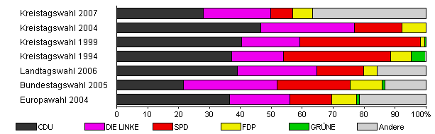 | Kreistagswahl 2004 | 66,9 | 46,5 | 30,3 | 15,4 | 7,8 | x | x | |