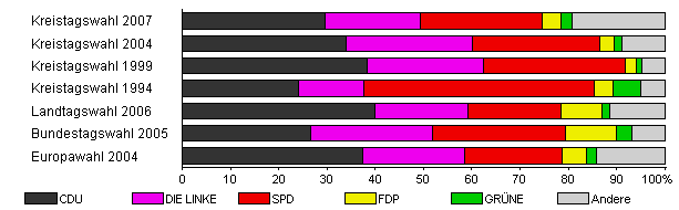 | Kreistagswahl 2004 | 43,3 | 34,0 | 26,2 | 26,4 | 3,0 | 1,5 | 8,9 | |