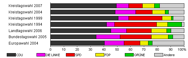 | Kreistagswahl 2007 | 37,6 | 49,4 | 9,1 | 10,4 | 8,9 | 3,9 | 18,3 | |