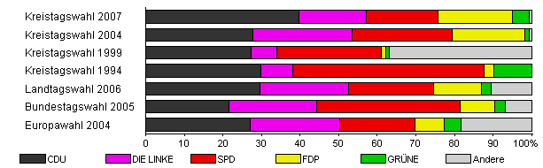 | Kreistagswahl 2007 | 44,4 | 39,7 | 17,4 | 18,7 | 19,3 | 4,2 | 0,6 | |