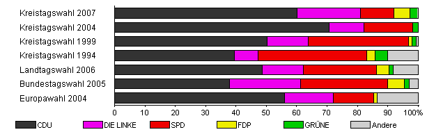 | Kreistagswahl 2007 | 43,6 | 60,2 | 20,9 | 11,0 | 5,2 | 2,6 | - | |