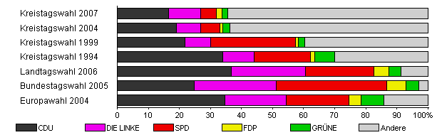 | Kreistagswahl 2007 | 41,3 | 16,5 | 10,3 | 5,1 | 1,8 | 1,8 | 64,5 | |