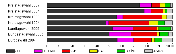 | Kreistagswahl 2007 | 49,3 | 74,0 | 9,3 | 6,9 | 3,9 | 4,4 | 1,5 | |