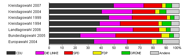 | Kreistagswahl 2007 | 35,3 | 49,6 | 23,1 | 14,0 | 3,1 | 4,5 | 5,7 | |