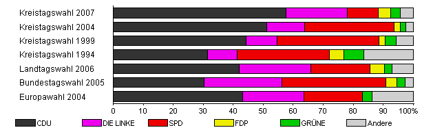 | Kreistagswahl 2007 | 38,9 | 57,7 | 20,3 | 10,4 | 4,1 | 3,2 | 4,5 | |