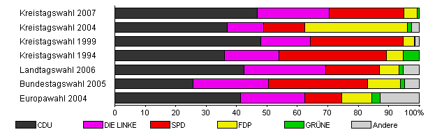 | Kreistagswahl 2004 | 47,3 | 36,9 | 12,1 | 13,4 | 33,8 | 1,4 | 2,4 | |