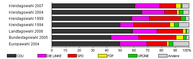 | Kreistagswahl 2004 | 47,3 | 65,7 | 16,4 | 9,0 | 1,6 | 3,0 | 4,4 | |