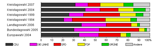 | Kreistagswahl 2007 | 37,9 | 31,4 | 11,7 | 11,2 | 21,7 | 8,8 | 15,2 | |