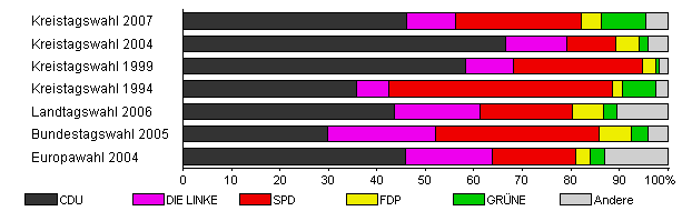 | Kreistagswahl 2004 | 46,2 | 66,6 | 12,7 | 10,0 | 4,8 | 1,9 | 4,0 | |