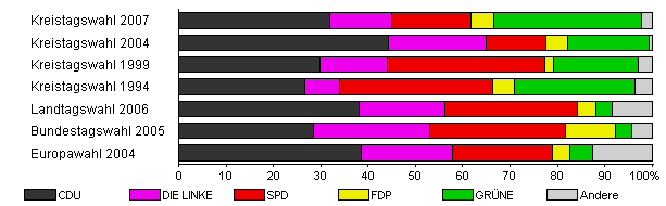 | Kreistagswahl 2007 | 36,6 | 32,0 | 12,9 | 16,9 | 4,8 | 31,1 | 2,3 | |