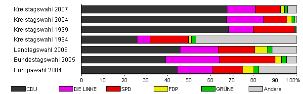 | Kreistagswahl 2007 | 47,9 | 67,8 | 12,9 | 11,7 | 1,9 | 1,4 | 4,4 | |