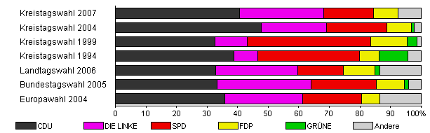 | Kreistagswahl 2007 | 65,9 | 40,6 | 27,5 | 16,3 | 8,1 | - | 7,5 | |