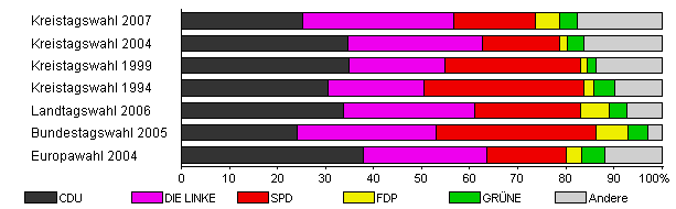 | Kreistagswahl 2007 | 32,1 | 25,3 | 31,4 | 17,1 | 4,9 | 3,6 | 17,7 | |