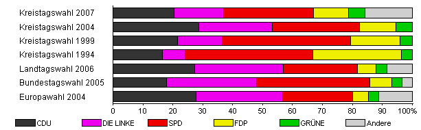 | Kreistagswahl 2007 | 29,3 | 20,4 | 16,5 | 30,1 | 11,7 | 5,5 | 15,8 | |