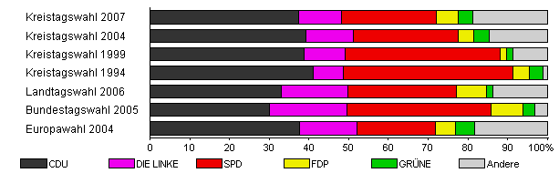 | Kreistagswahl 2004 | 48,7 | 39,3 | 11,9 | 26,5 | 3,8 | 3,8 | 14,7 | |