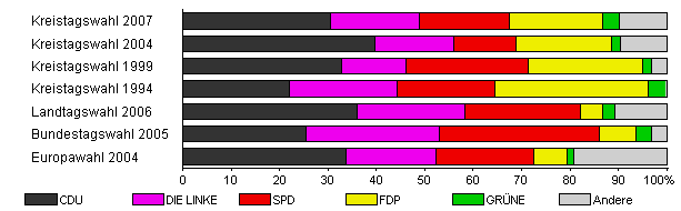 | Kreistagswahl 2007 | 43,9 | 30,5 | 18,3 | 18,6 | 19,4 | 3,4 | 9,9 | |