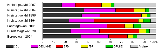 | Kreistagswahl 2004 | 51,2 | 36,5 | 27,9 | 16,3 | 10,1 | 3,4 | 5,9 | |