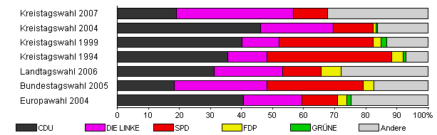 | Kreistagswahl 2007 | 54,6 | 19,0 | 37,6 | 11,1 | - | - | 32,3 | |