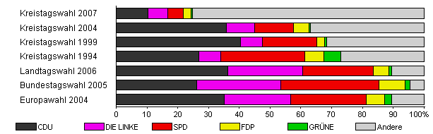 | Kreistagswahl 2007 | 58,3 | 10,4 | 6,4 | 5,1 | 2,4 | 0,5 | 75,2 | |