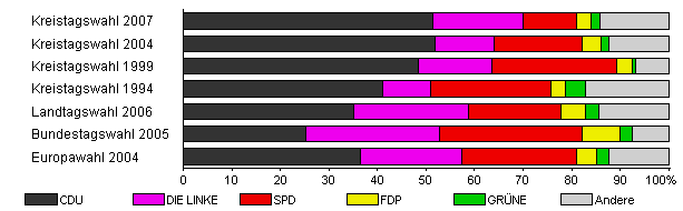 | Kreistagswahl 2007 | 43,9 | 51,5 | 18,4 | 11,2 | 2,9 | 1,8 | 14,1 | |