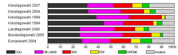 | Kreistagswahl 2004 | 40,5 | 31,6 | 26,3 | 18,0 | 4,8 | 4,4 | 14,9 | |