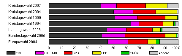| Kreistagswahl 2007 | 37,1 | 40,3 | 12,0 | 22,5 | 16,8 | - | 8,4 | |