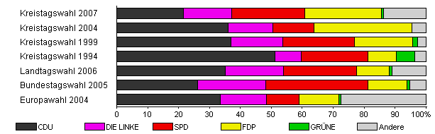 | Kreistagswahl 2007 | 32,2 | 21,6 | 15,5 | 23,8 | 24,7 | 0,7 | 13,7 | |