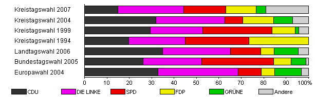 | Kreistagswahl 2007 | 33,7 | 14,9 | 29,4 | 18,9 | 13,4 | 4,5 | 18,9 | |
