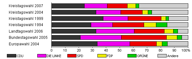 | Kreistagswahl 2007 | 33,9 | 24,0 | 16,9 | 14,7 | 6,1 | 2,3 | 35,9 | |