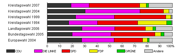 | Kreistagswahl 2007 | 35,2 | 19,0 | 14,6 | 40,4 | 5,1 | 2,0 | 18,9 | |