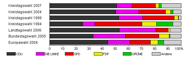 | Kreistagswahl 2007 | 52,7 | 50,9 | 11,7 | 18,0 | 2,5 | 1,8 | 15,2 | |