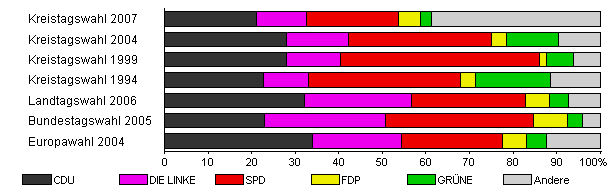 | Kreistagswahl 2007 | 35,5 | 21,1 | 11,4 | 21,3 | 5,0 | 2,5 | 38,7 | |