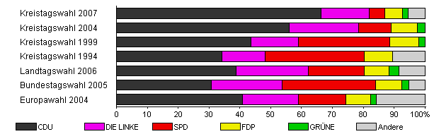 | Kreistagswahl 2007 | 41,2 | 66,4 | 15,5 | 5,1 | 5,7 | 1,9 | 5,4 | |