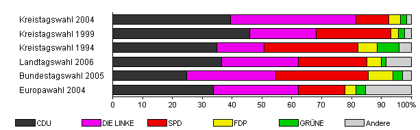 | Kreistagswahl 2004 | 46,6 | 39,4 | 42,2 | 10,8 | 3,9 | 2,1 | 1,6 | |