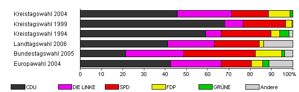 | Kreistagswahl 2004 | 58,6 | 45,7 | 25,5 | 17,4 | 10,0 | 1,4 | x | |