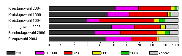 | Kreistagswahl 2004 | 74,3 | 51,5 | 17,9 | 25,1 | 2,9 | 1,7 | 1,0 | |