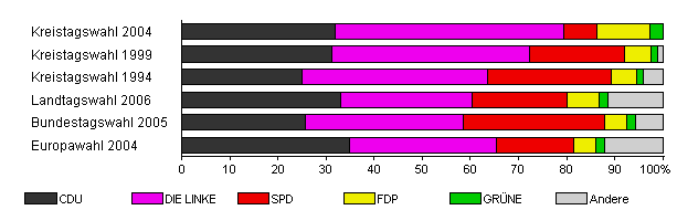 | Kreistagswahl 2004 | 50,0 | 31,9 | 47,5 | 6,8 | 11,1 | 2,7 | x | |