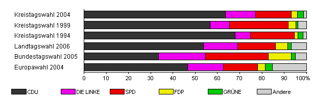 | Kreistagswahl 2004 | 54,4 | 63,7 | 13,5 | 16,0 | 2,8 | 2,6 | 1,4 | |