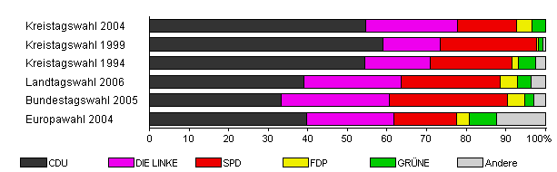 | Kreistagswahl 2004 | 45,0 | 54,7 | 23,2 | 14,8 | 4,0 | 3,3 | x | |
