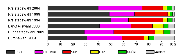 | Kreistagswahl 2004 | 55,0 | 39,9 | 34,8 | 16,2 | 3,3 | 4,0 | 1,7 | |