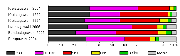 | Kreistagswahl 2004 | 45,8 | 32,3 | 37,7 | 24,9 | 3,3 | 1,9 | x | |