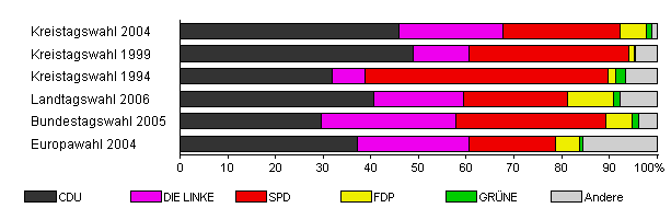 | Kreistagswahl 1999 | 49,8 | 48,8 | 11,7 | 33,7 | 1,0 | 0,2 | 4,6 | |