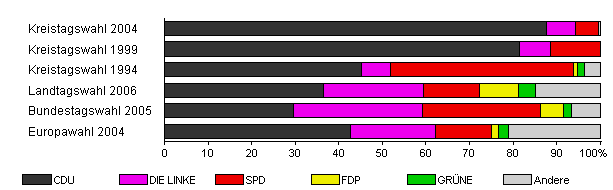 | Kreistagswahl 2004 | 83,2 | 87,7 | 6,7 | 5,3 | 0,2 | - | x | |