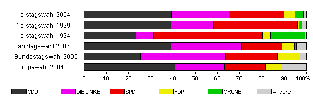 | Kreistagswahl 2004 | 57,5 | 39,2 | 26,0 | 24,8 | 4,8 | 3,9 | 1,3 | |