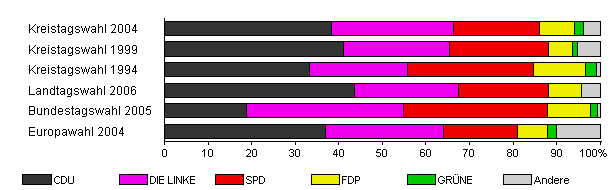 | Kreistagswahl 2004 | 60,1 | 38,4 | 27,9 | 19,8 | 8,1 | 2,0 | 3,8 | |