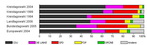 | Kreistagswahl 2004 | 58,2 | 63,0 | 17,2 | 15,1 | 3,4 | 1,3 | - | |